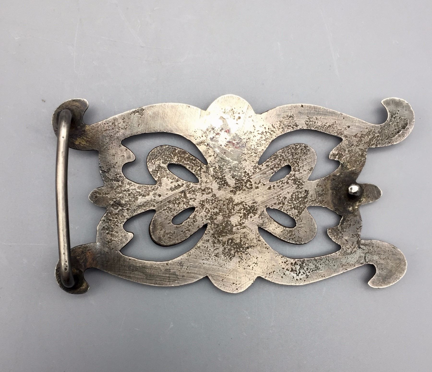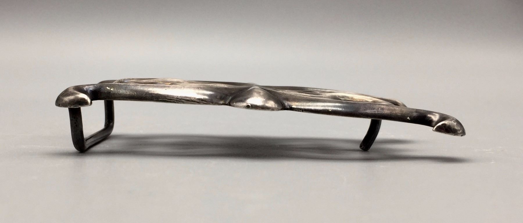 Maker: Unknown, but most likely Navajo. Approx. Age: Vintage. Size: Measures 1 7/8” w x 3 1/2” h. Weighs 69.1 g. Additional Info: Sandcast style belt buckle. Condition: Good for it’s age. Please look closely at the pictures - they are an important part of our description. Shipping: There will be a $5 handling / packaging fee for shipping this lot. The actual cost of postage will be added on top of that.