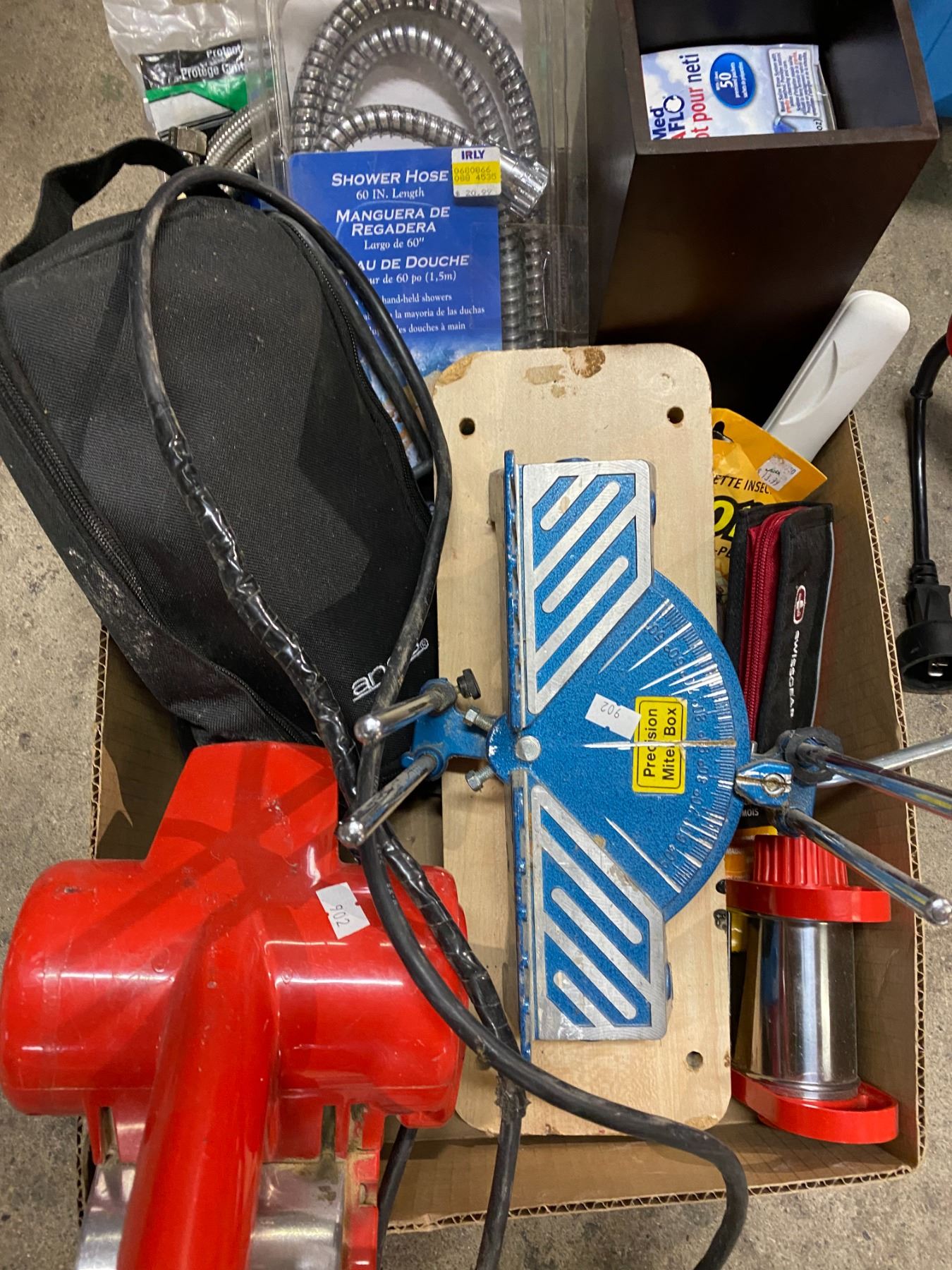 Sander, miter box, shower hose