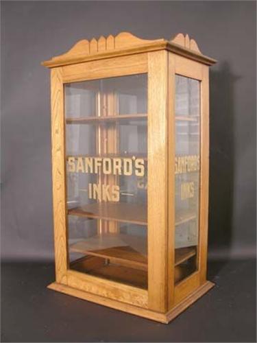 Sanford's Ink store display cabinet - ashwood/original advertising on 3 sides. 20" x 34" x 14" Ex. cond.