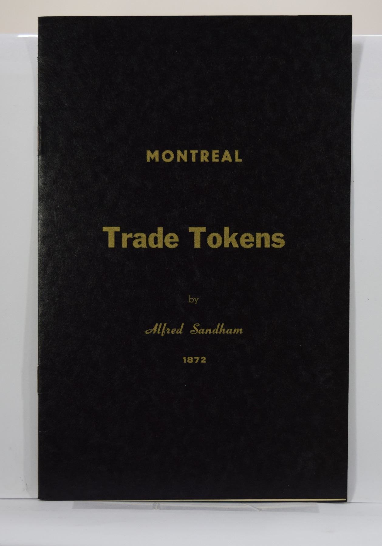 Sandham, Alfred. MONTREAL TRADE TOKENS. Private Printing. ND. 12mo, 4 pages; Softcover; Offprint of the American Journal of Numismatics, April, 1872; 1 plate; inscribed by the printer. Subject: Tokens - Canada