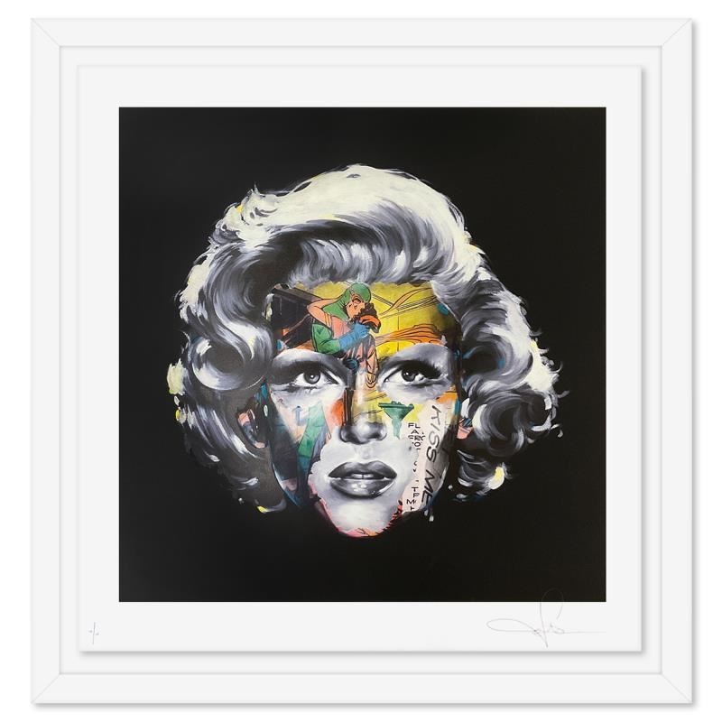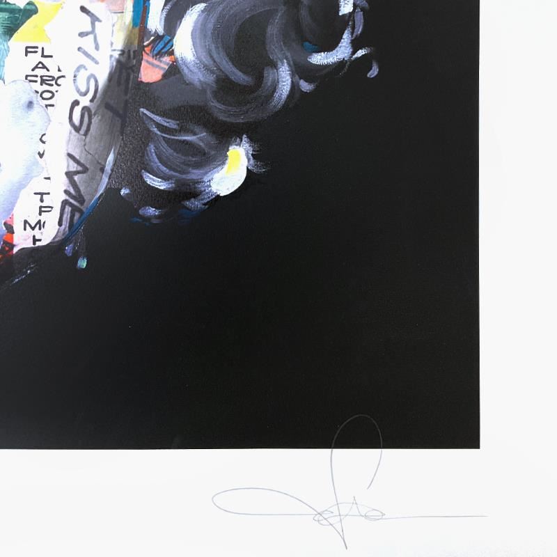 "Le Cage et le Murmure Des Amoureux" is a limited edition screen print by Sandra Chevrier, numbered 132/295 and hand signed by the artist. This piece comes framed. Includes Certificate of Authenticity. Measures approx. 36" x 35" (frame), 30" x 29" (image). ** Please note: there are some scuffs in the black area. **