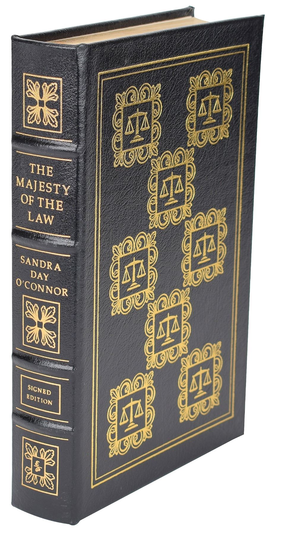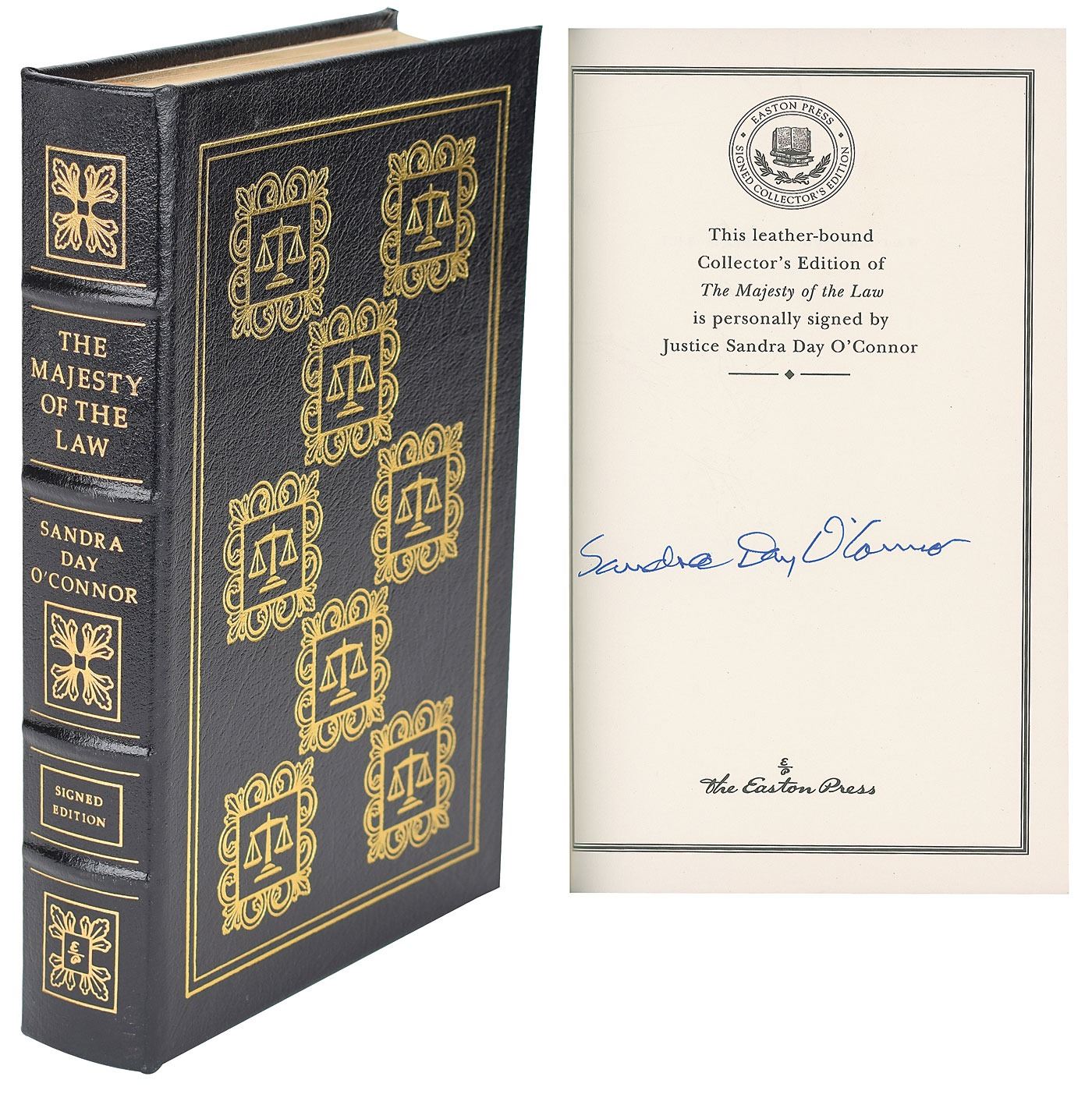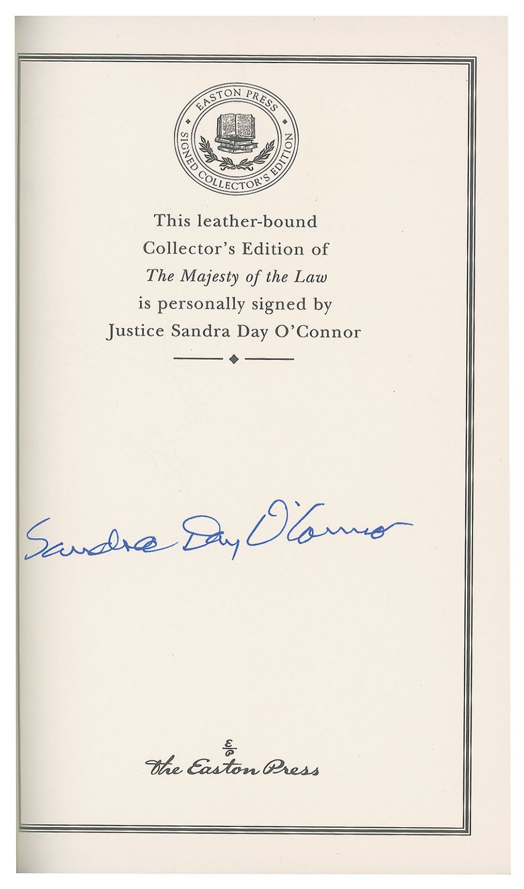 Signed book: The Majesty of the Law. Collector's edition. Norwalk, CT: Easton Press, 2005. Leatherbound hardcover, 6.25 x 9.5, 330 pages. Signed on the colophon in blue ink by Sandra Day O'Connor. In very fine condition. Accompanied by the publisher's certificate of authenticity.