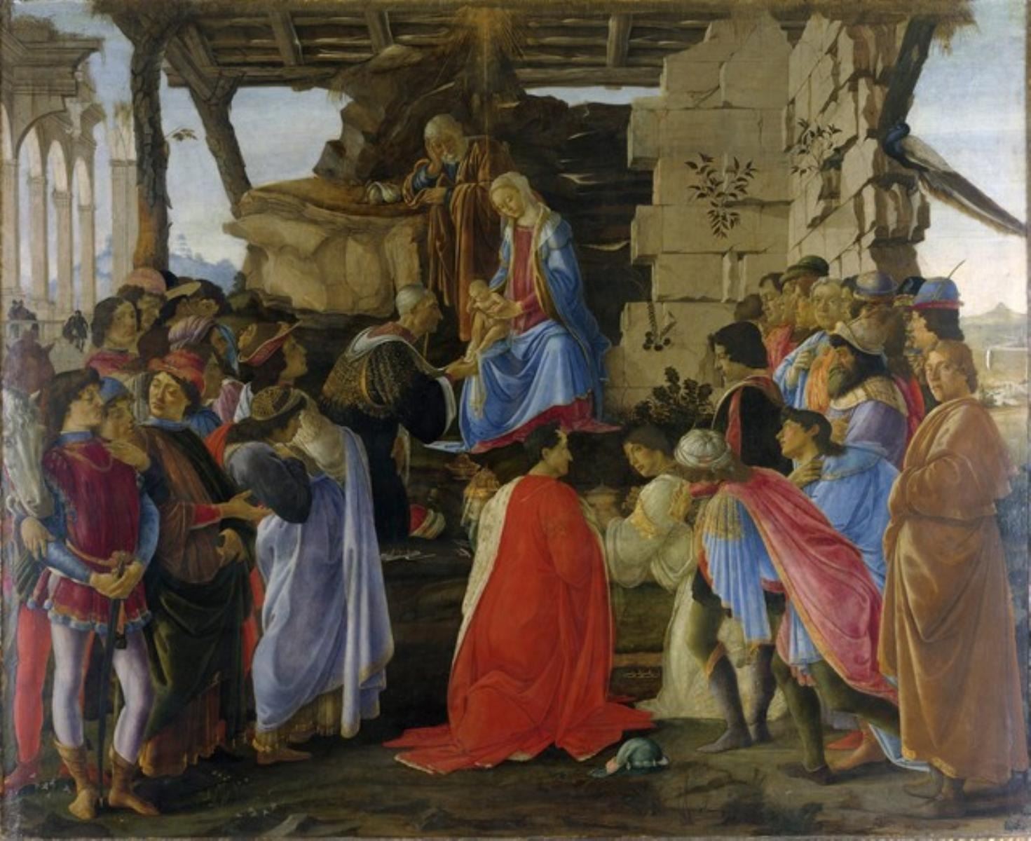 Artist: Sandro Botticelli - Title: Adoration of the Magi - Medium: Fine Art Reproduction Giclee on Canvas - Image Size: Approximately 16.25 inches x 20 inches - Unframed on Unstretched Canvas - Biography: Sandro Botticelli, originally named Alessandro di Mariano Filipepi was born in Florence Italy in 1445 and died in 1510. Botticelli is one of the greatest painters of the Florentine Renaissance. His "The Birth of Venus" and "Primavera" are often said to epitomize for modern viewers the spirit of the Renaissance.