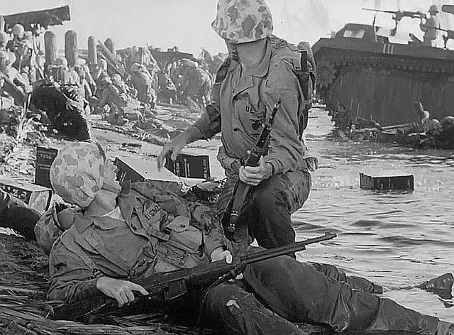 Sands Of Iwo Jima Stunt M1918 Browning Automatic Rifle Prop - "The Sands Of Iwo Jima" (1949) is considered the most powerful and acclaimed WW II movie ever made. So accurate a portray of the famous Battle of Iwo Jima, culminating in the famous "Raising of the Flag" over Mount Sunibachi, that the Marine Corps allowed the production to not only use the actual flag that was raised on that fateful February 23rd, 1945, but utilized three of the actual Marines who originally held the flag up in the scene that recreated that monumental event. The film was also required viewing for all Marine Recruits in boot camp for the next 40 years. It was also one of John Wayne's most complex characters, playing the iconic Sgt. John M. Stryker, a man whose personal torment is taken out on the green recruits that he is training for the battle. Everything about this production was painstakingly accurate, including the inclusion of the famous gunners who were specially trained to use the BAR weapons (Browning Automatic Rifle) The Browning Automatic Rifle was a mainstay of the Marine rifle squad and platoon. It was deployed to every campaign that Marines fought in during World War II and was essential to "give cover" during the Iwo Jima Battle. These were hand carried, and even hand-fired machine guns. So in demand where these, and so hard to use, that only a few highly experienced gunners were assigned to each squad. This is one of the extremely rare actual hero stunt M1918 Browning Automatic Rifles used in the film by PFC George Hellenopolis (Peter Coe) who was Wayne's Squad's BAR Rifle gunner. These brave soldiers were known as "BAR Men". In order to achieve the feeling of these extremely heavy weapons, Republic Studio's Prop Department, crafted this stunt non-firing version with many of the same metals and wood to give it the same weight as the original, so that the actor would look right when holding and running with it. An actual "live-fire" version of this rifle, which was one that was actually used in the Iwo Jima battle, was used during the scenes where we see Hellenopolis firing the gun. Several other BAR gunners can be seen in several battle sequences, and several of them may also have used this stunt BAR. This original stunt rifle is approx 47" long. Please note that because of the extreme weight of this prop there will extra shipping charges.
