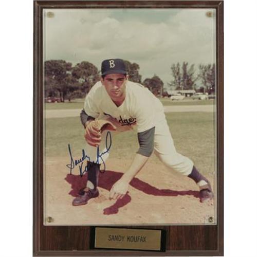<B>Sandy Koufax Signed Photograph.</B></I> Classic 8x10" color image of the HOF Dodger hurler is signed with an impressive blue sharpie autograph. One of the finest lefty aces of all time. <I>LOA from PSA/DNA.</B></I><BR><BR><b>Shipping:</b> Requires 3rd Party Shipping (<a target="_blank" href="http://www.heritageauctions.com/common/shipping.php">view shipping information</a>)