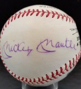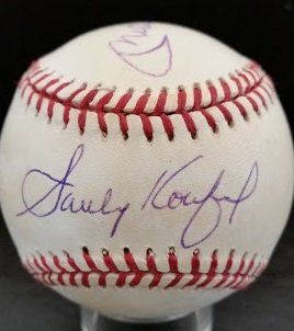 Sandy Koufax and Mickey Mantle Signed Baseball Certified by The Score Board, this ball does have light shellack.