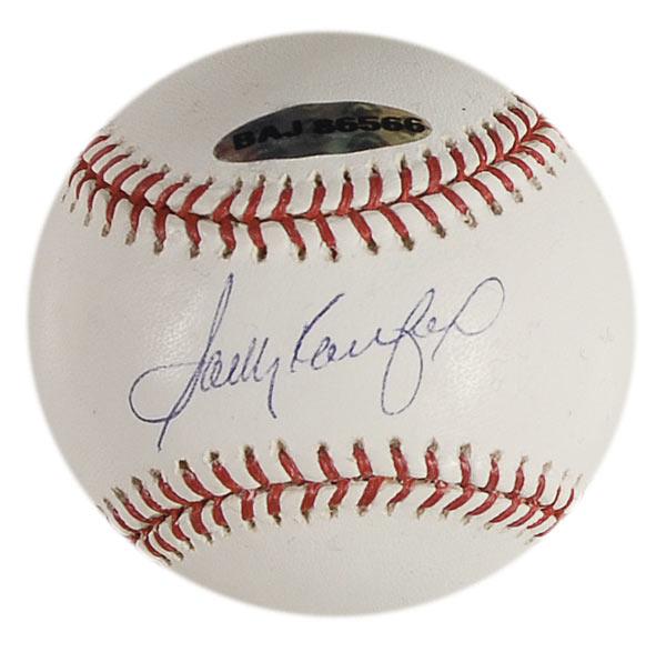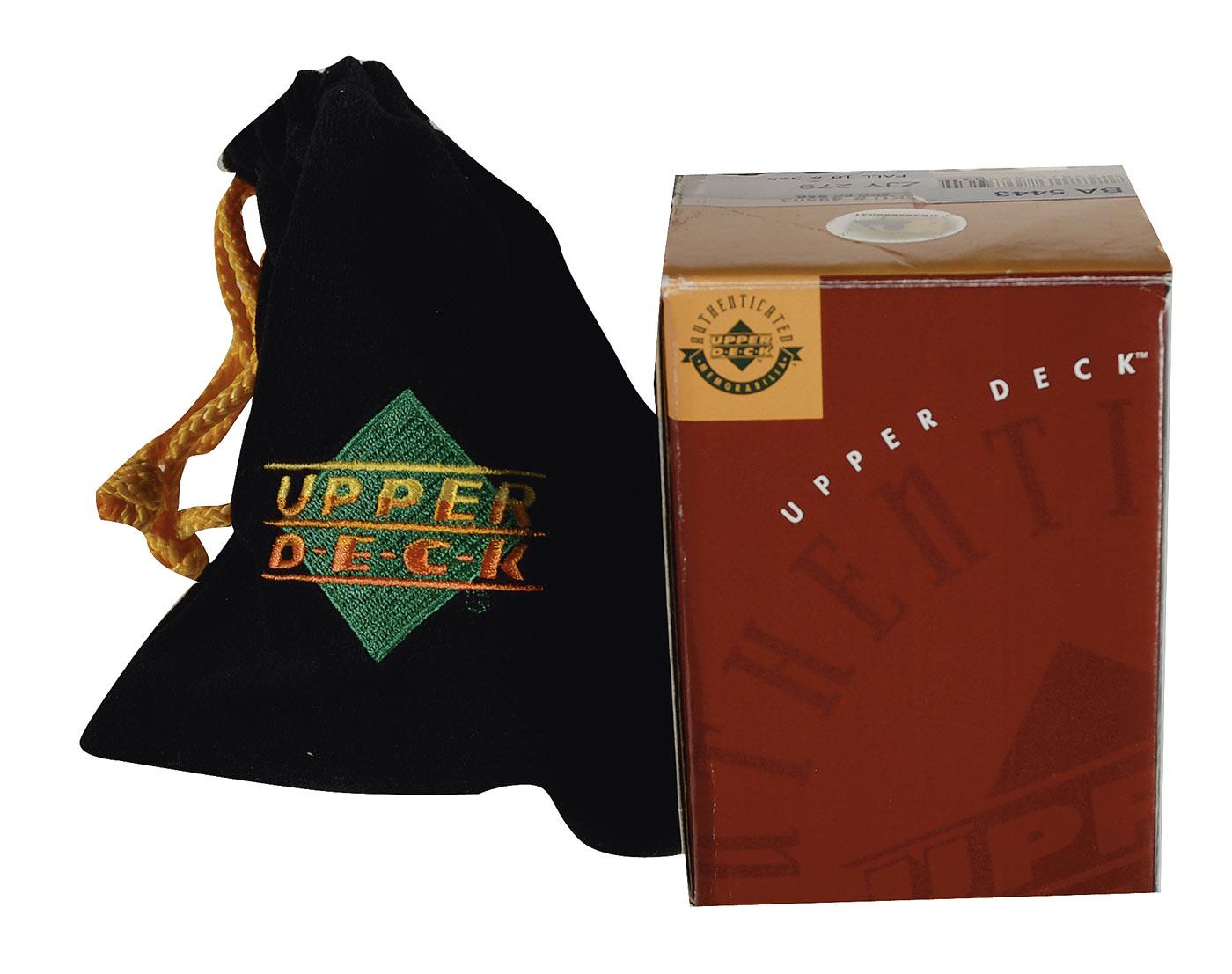 Official Rawlings Major League baseball signed in blue ballpoint. In fine condition, with Upper Deck authentication label affixed to the sphere. Accompanied by a certificate of authenticity from Upper Deck, as well as its original cloth bag and box.