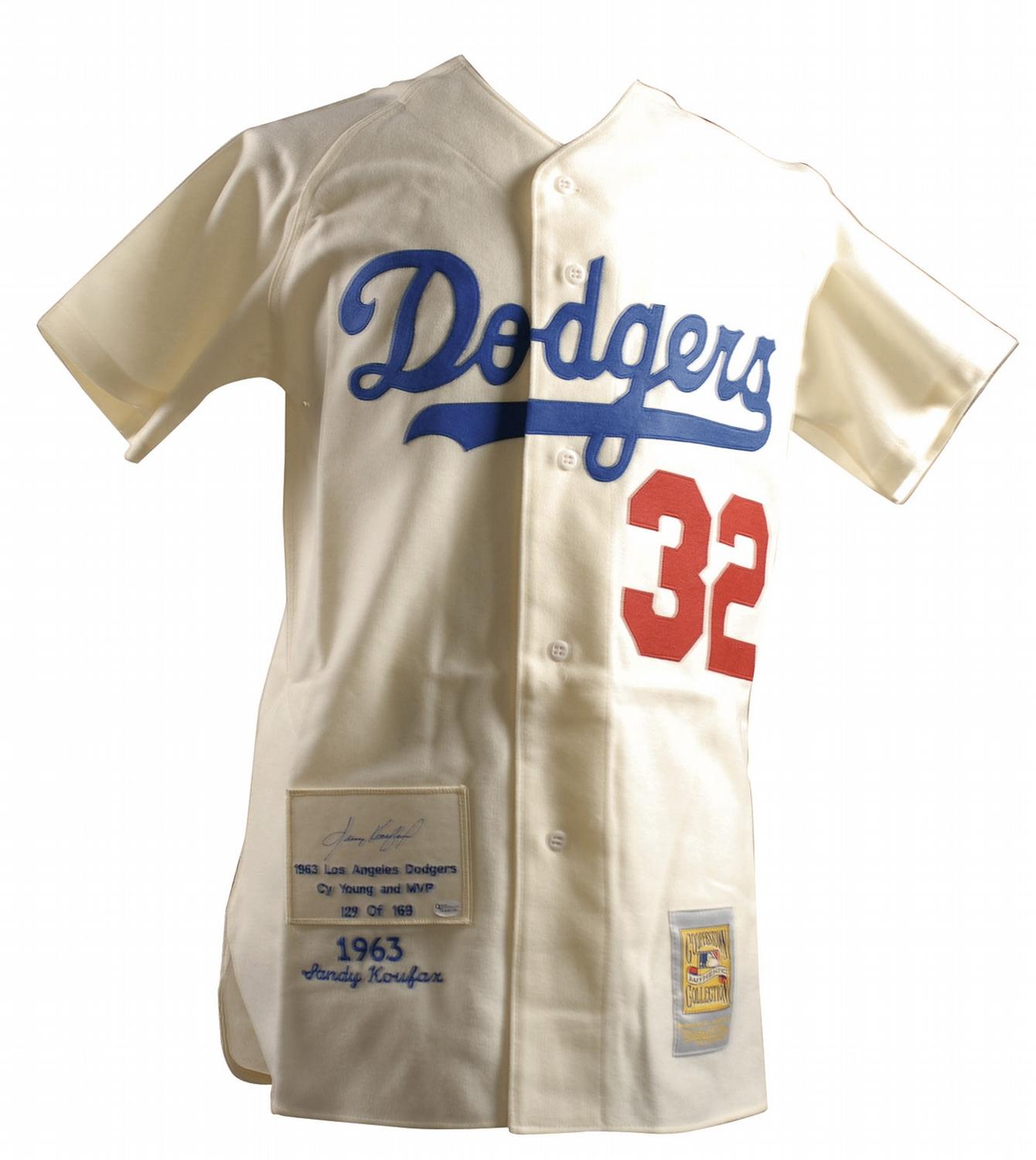 Official limited edition Mitchell & Ness Cooperstown Collection replica Los Angeles Dodgers baseball jersey, with sewn-on letters and numbers, numbered 129/169, signed in blue felt tip on a commemorative patch on the front. In very fine condition.