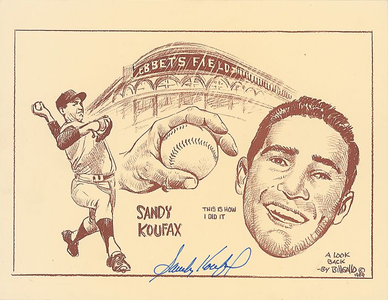 Composite print of Koufax and Ebbets Field, 11.5 x 9, signed in blue felt tip. In fine condition.
