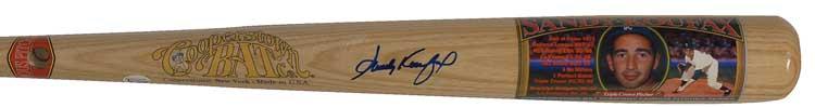 Official Cooperstown Bat Co. Sandy Koufax commemorative baseball bat signed in blue felt tip on the barrel. In fine condition, with a couple of light scuffs above signature. Pre-certified Steve Grad/PSA/DNA and RRAuction COA.