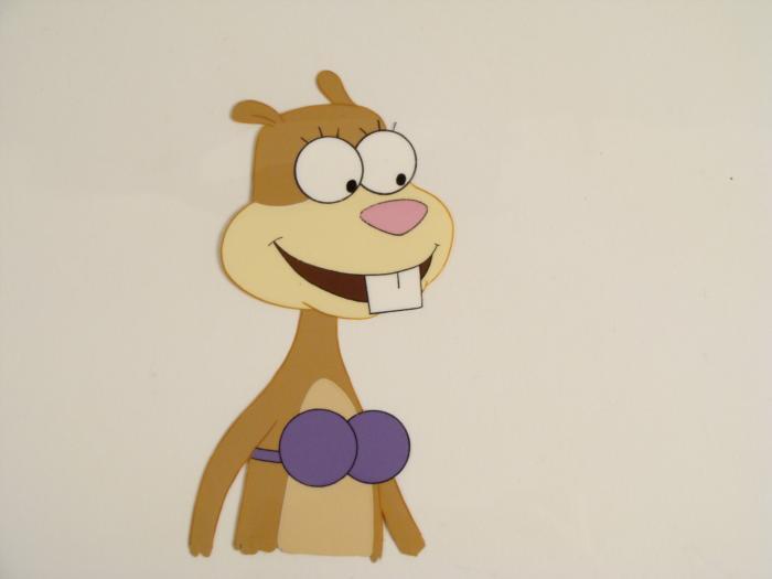 This original animation cel is from the Nickelodeon TV show SpongeBob Squarepants. The story takes place under the deep blue sea in Bikini Bottom, where SpongeBob resides. SpongeBob, who is a yellow, porous sponge, is your typical happy-go-lucky character, as he is always cheerful and enjoys making people laugh. Patrick Star, SpongeBob's neighbor who is a starfish, is your average children's show idiot, as he boasts knowing nothing and is often getting himself into ridiculous situations. Between the homes of these two lies the home of the miserable Squidward, a squid, who is known for being grouchy and playing tricks on SpongeBob and Patrick. Both SpongeBob and Squidward work at the Krusty Krab, a fast food business run by the greedy money-loving Mr. Krabs, a crab, the arch rival of the evil, possibly misunderstood, Plankton. Another neighbor, Sandy Cheeks, an athletic squirrel who normally wears an astronaut's space suit, was introduced in "Tea at the Treedome." She spends most of her time inventing and experimenting. Sandy Cheeks has a big toothOriginal Production Animated Cel Overall Size of Cel: 10 1/2" x 12 1/2" Very Good ConditionThis is an original hand-painted cel set-up used in the production of an episode of "SpongeBob SquarePants." Each one-of-a-kind set-up represents a slight change in position of the characters. When individually photographed and projected in rapid succession, the images appear to move.