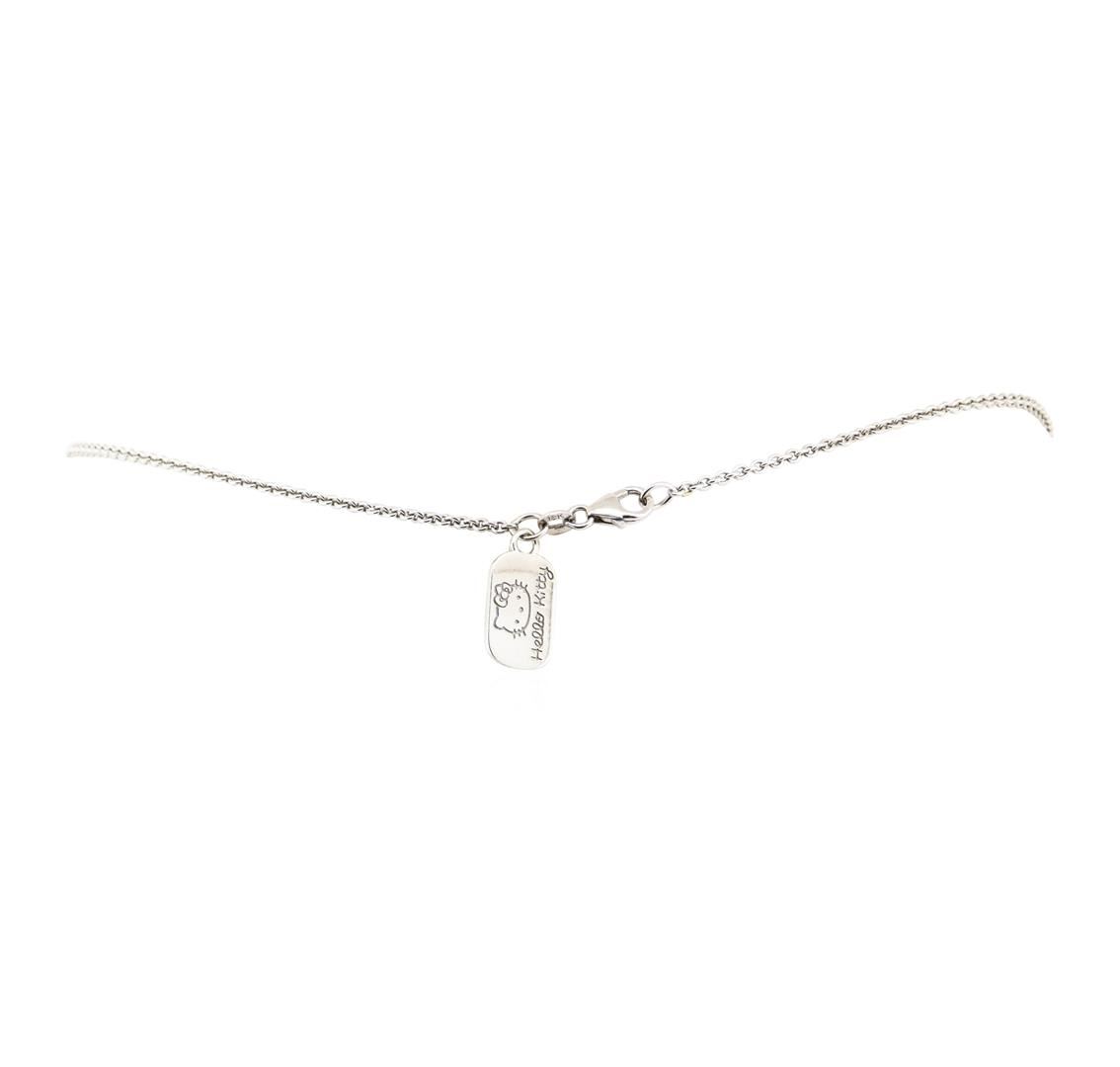 One Sanrio Hello Kitty heart shaped pendant with chain featuring: .925 silver and 18KT white gold weighing 14.0 grams containing diamonds weighing 0.60ctw. The chain is a 1.8mm rounded cable link chain measuring 16 inches in length.