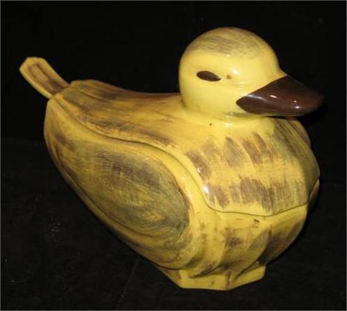 Santa Anita Ware, artist signed Duck soup tureen, with ladle, 16 x 9 x 11.