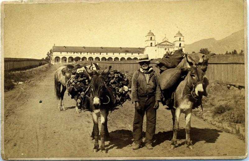 Santa Barbara,CA - c1875 - Packing Wood from the Old Mission Photograph :