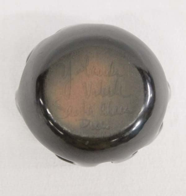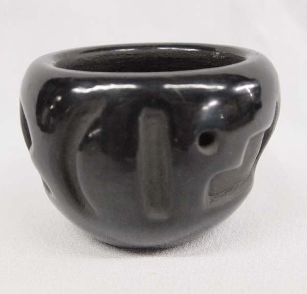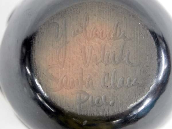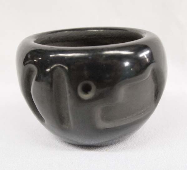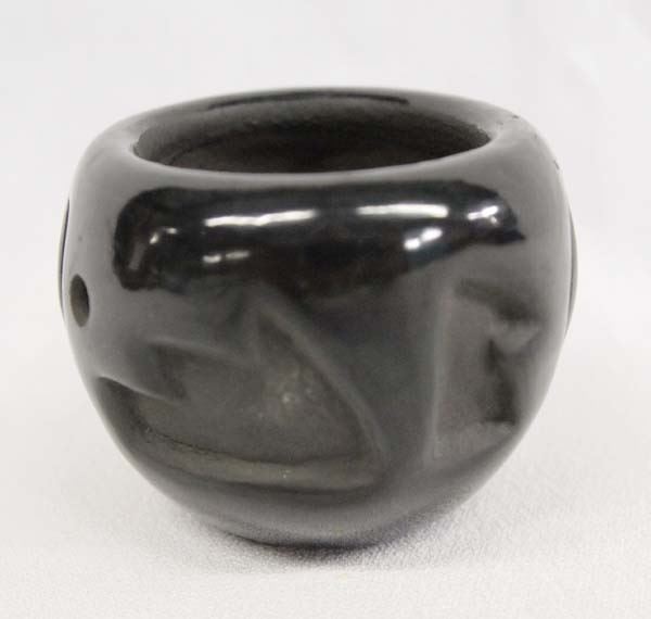 Beautifully Carved Native American Santa Clara Pottery Jar by Yolanda Velarde, measures 2.75''L x 2.25''W x 2''H, signed on bottom by artist