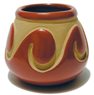 Belen Tapia, Exquisite high polished red-on-cream wave motif jar. 3-1/2" x 4"
