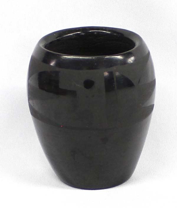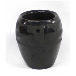 Native American Santa Clara Matte on Black Pottery Jar, measures 3.5'' tall x 3'' wide, nice thick walled pottery