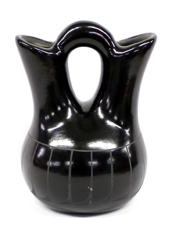 Native American Santa Clara Matte on Black Pottery Wedding Vase, measures 9'' x 5.5'', nice heavy thick walled pottery