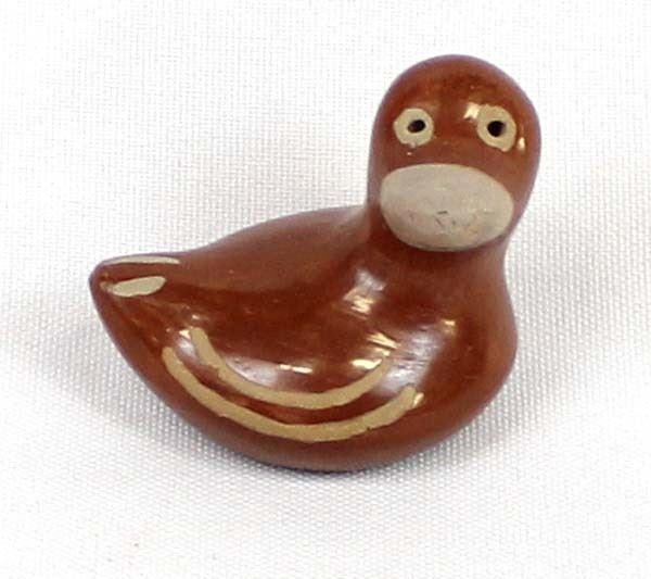 Native American Santa Clara Miniature Pottery Duck, measures 2''L x 1''W x 1.5''H, unreadable name on the bottom