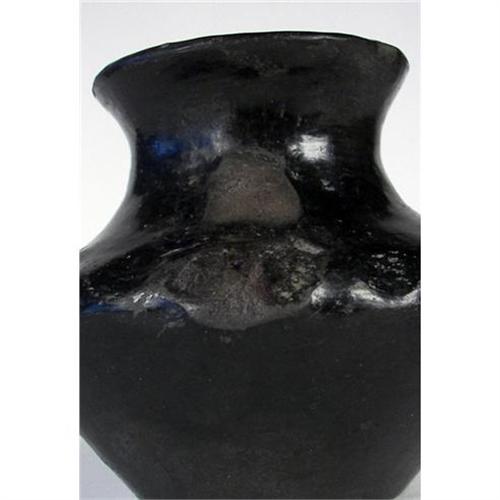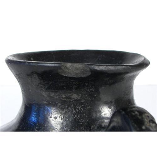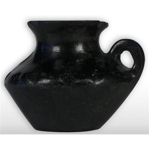 Santa Clara Pot with 1 Handle, 3 1/2" tall x 4" diameter, repair where 2nd handle was, rim chip