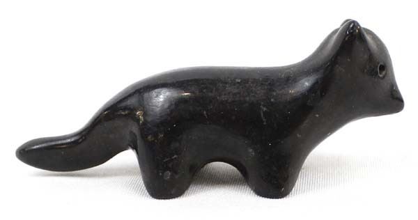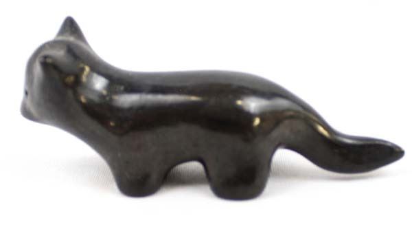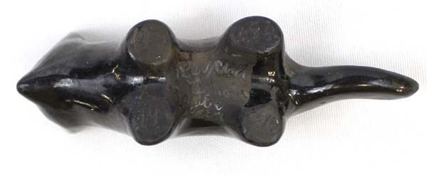 1976 Native American Santa Clara Pottery Fox by Reycita Cosen (1927-2012), measures 4.5''L x 1'' and is signed on the bottom, FYI: ''She was known for the complex carving on her pottery. Each piece was coil built, carved, stone polished, and traditionally fired.''