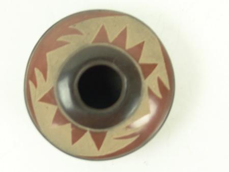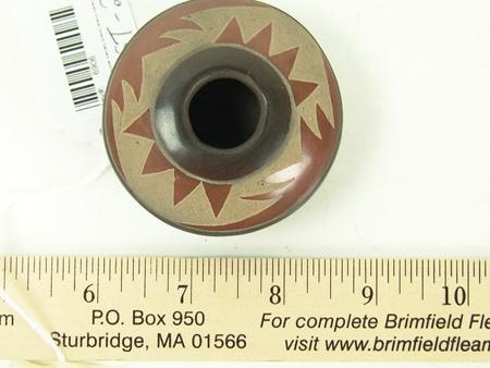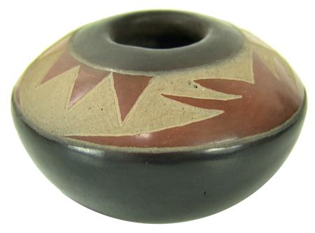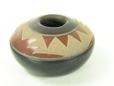 Circa 1972, Rare early sgraffitto polychrome seed pot with stylized leaf motif on shoulder. Very good condition, light handling. 1-1/2" x 2-3/4"