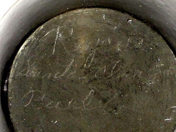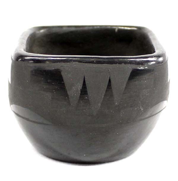 Native American Santa Clara Matte on Black Pottery Jar by Reycita Naranjo, measures 3'' x 3'' x 2.5'', square rim and signed on the bottom, FYI: ''Reycita Naranjo (1926-2003) was a traditional potter from Santa Clara Pueblo.''