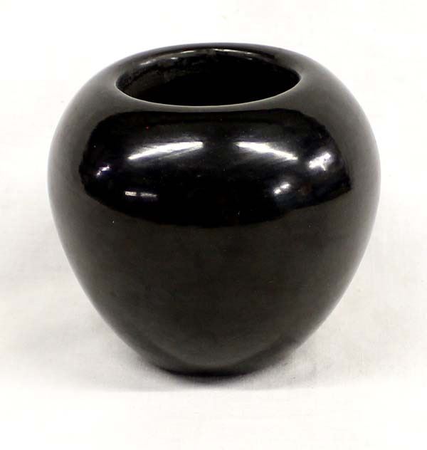 Native American Santa Clara Pottery Jar by Tricia Velarde, measures 4'' x 4'' and is signed on the bottom, highly burnished blackware, nice thick walled jar