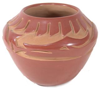 Glenda Naranjo, Well-executed deep caved pottery jar with traditional Avanyu figure. 9" x 6-1/2"