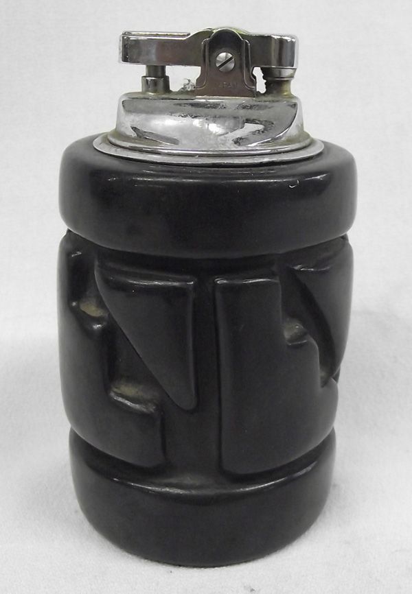 Santa Clara Pottery Lighter -- Richard Ebelacker, beautifully carved in traditional Santa Clara designs, measures 4.25''H x 2.25''W