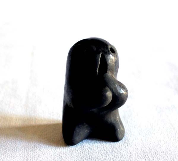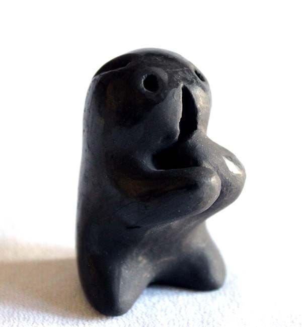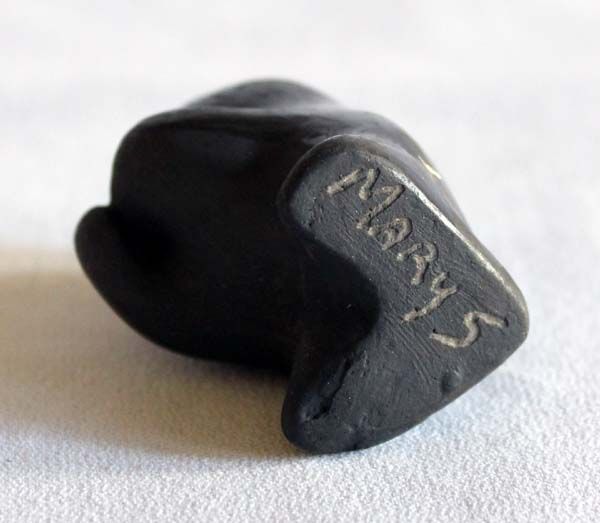 Santa Clara Pottery Otter by Mary Suazo, measures 2.25''H x 1 3/8''L x 1 3/16''Deep, black on black designs, signed Mary S.