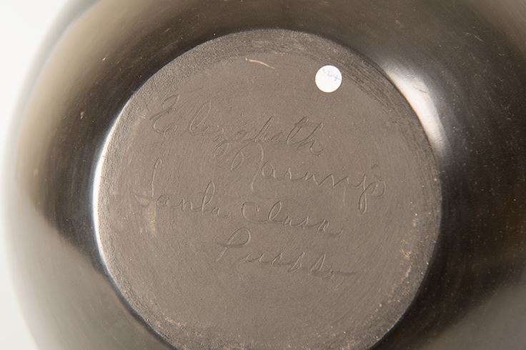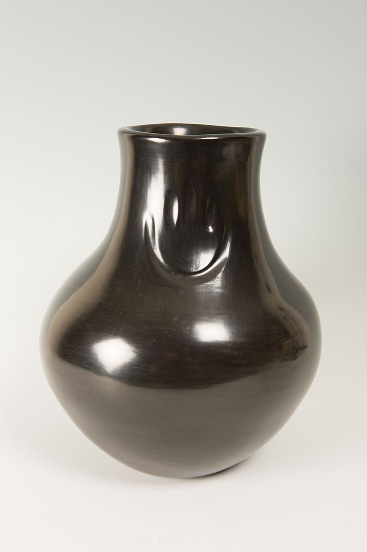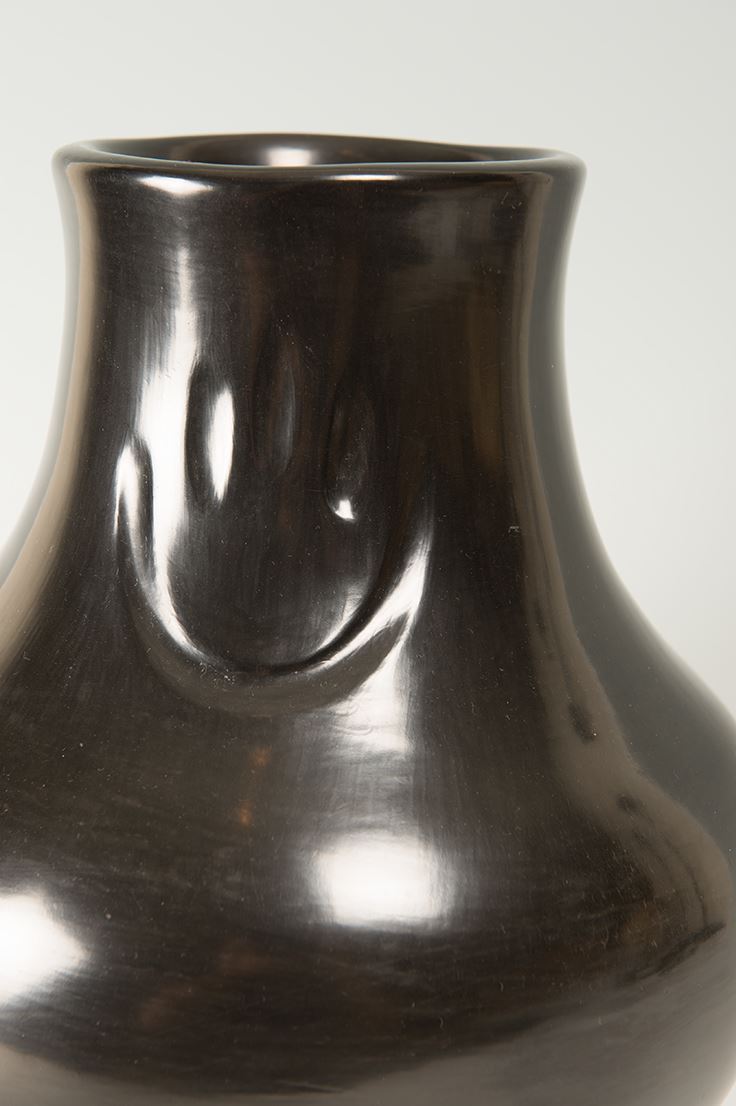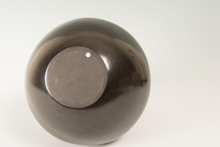 Santa Clara Pueblo Jar by Elizabeth Naranjo. 13" x 12". Blackware jar with a Bear Paw design. Finished with a wonderful polish. Signed on bottom: Elizabeth Naranjo, Santa Clara Pueblo.