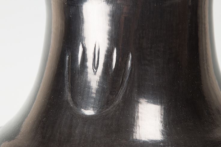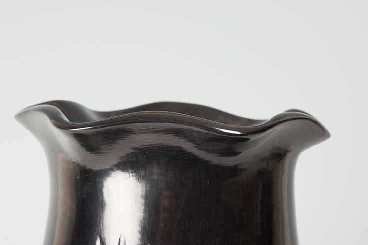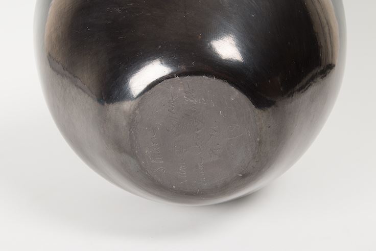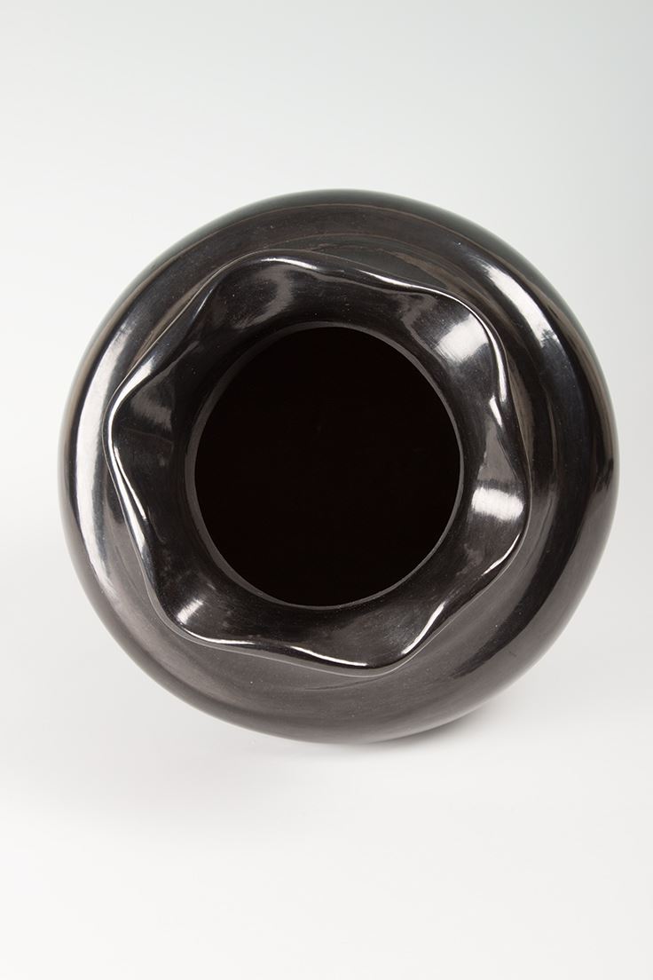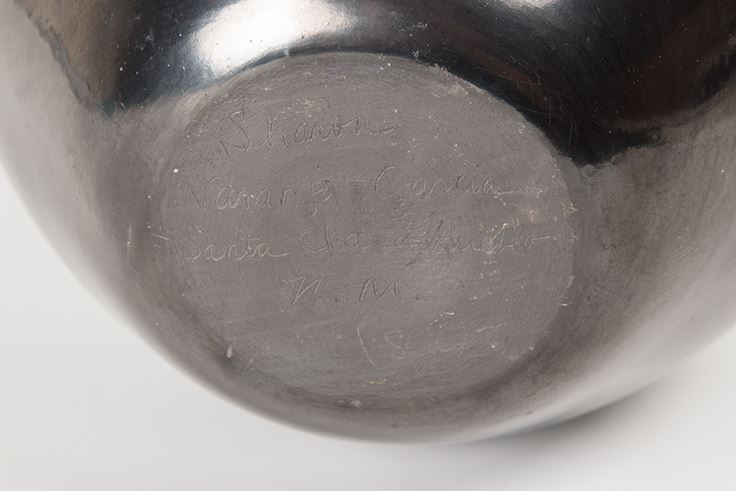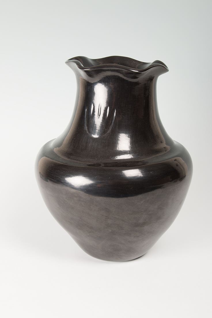 Santa Clara Pueblo Jar by Sharon Naranjo (1951 - ). 13" x 10". Bear Paw designs with a pie crust rim. Signed on bottom: Sharon Naranjo Garcia, Santa Clara, NM. 1970's.