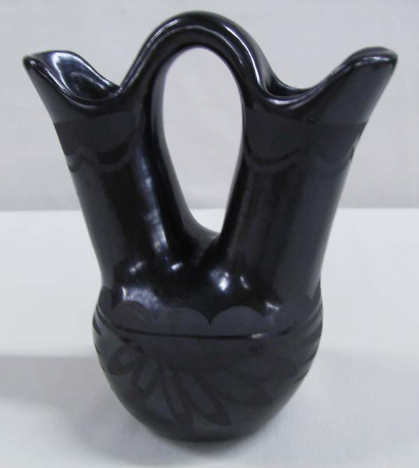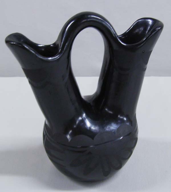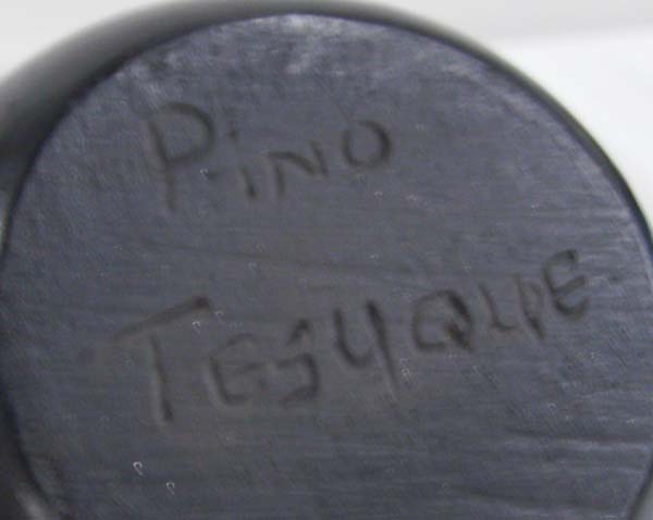 Native American Santa Clara Signed Wedding Vase. Signed on the bottom ''Pino Tesyoue''. Measures approx. 6''H x 5''W x 3''D. Buyers Pay Actual Shipping and Handling Charges(see terms and conditions for more information).