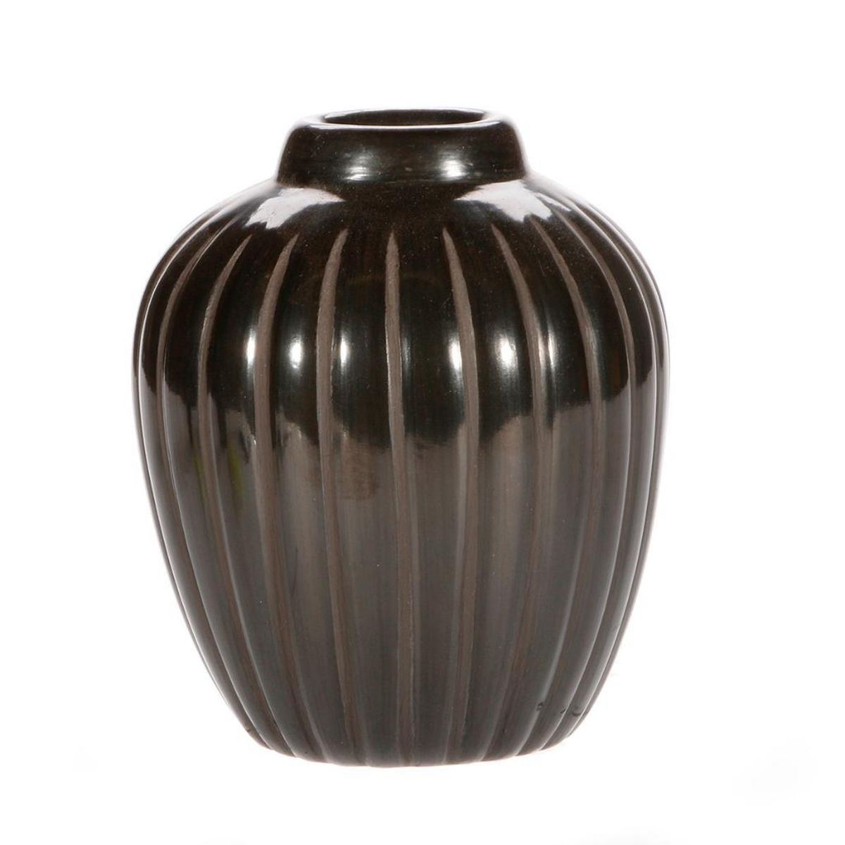 Santa Clara blackware squash jar, signed "Baca". Size: 4 1/2 x 3 1/2"