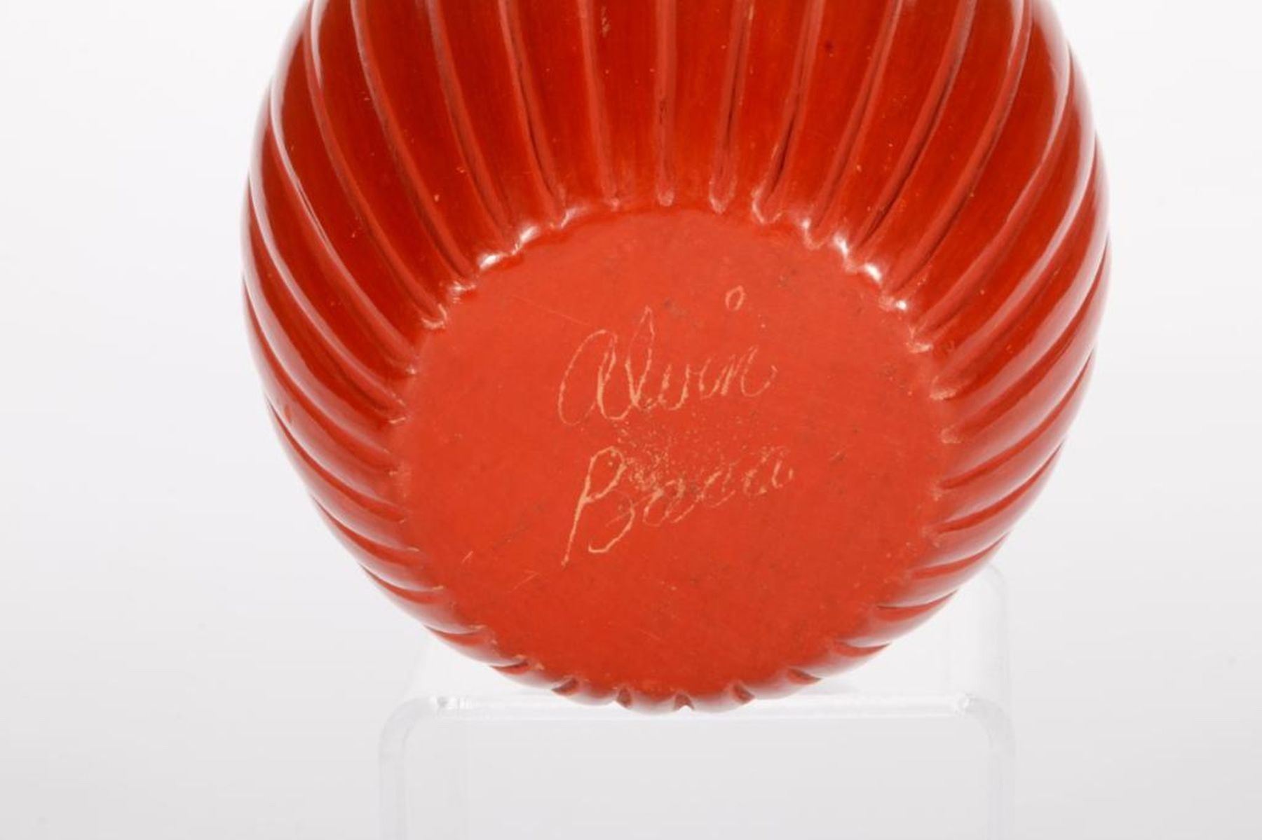 Santa Clara squash jar, signed "Baca". Size: 5 1/4 x 4"