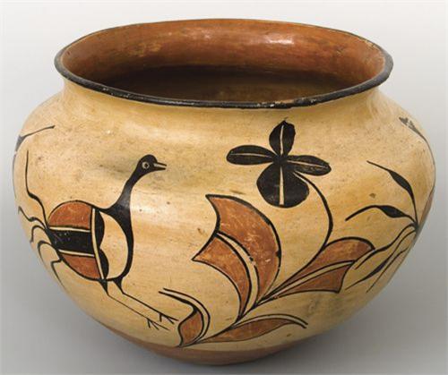 Santa Domingo Olla. 10" x 13". Bird designs. Fine condition. (est $4,000-6,000)