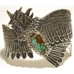 Old Pawn Navajo Spider Web Turquoise Sterling Silver Cuff Bracelet - Calvin Martinez