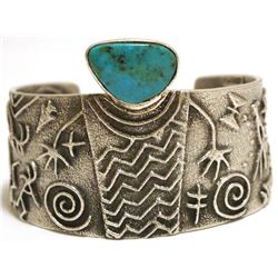 Old Pawn Zuni Sleeping Beauty Turquoise Sterling Silver Cuff Bracelet - Robert & Bernice Leekya