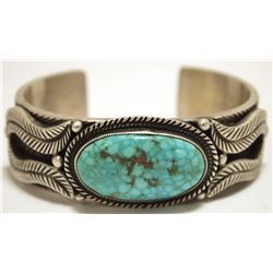 Old Pawn Navajo Kingman Turquoise Sterling Silver Cuff Bracelet - Calvin Martinez