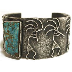 Navajo Kingman Turquoise Sterling Silver Tufa Cast Kokopelli Cuff Bracelet - Philander B Begay