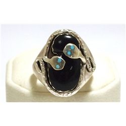 Zuni Onyx Snake Sterling Silver Cuff Bracelet - Effie Calavaza