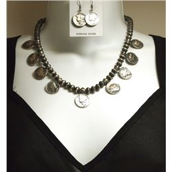 Navajo Sterling Silver Mercury / Winged Liberty Dimes Necklace & Earrings Set - Paul Livingston