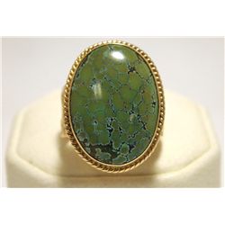 Old Pawn Navajo Spider Web King Fox Turquoise 14k Gold Men's Ring - Kirk Smith