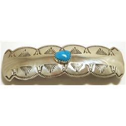 Old Pawn Zuni Sleeping Beauty Turquoise Sterling Silver Pin - Robert & Bernice Leekya