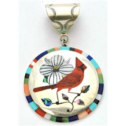 Zuni Multi-Stone Bird Design Sterling Silver Pendant - Rudell & Nancy Laconsello Measures 2-1/8" tall by 1-1/4" wide. Weight: 14.1g...