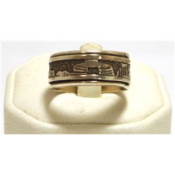 Navajo Spinner Sterling Silver Pueblo Scene Men's Ring - Elaine Becenti Band measures 3/8" wide, size: 10.75. Pueblo design is on a spinn...