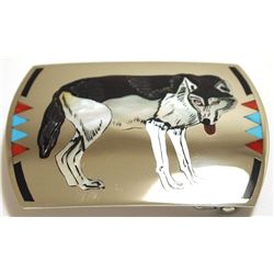 Zuni Multi-Stone Inlay Wolf Sterling Silver Buckle - Dale Edaakie