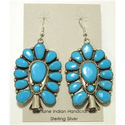 Navajo Turquoise Sterling Silver Squash Blossom French Hook Earrings - Lisa Williams Measure 2" tall by 7/8" wide. Weight: 7.8g SKU: e...