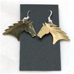 Navajo Pressed Horse Head Brass Earrings - Virgil Reeder